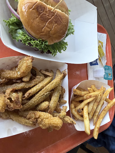 It was a pretty drive from Lexington and the food and service was good. Would be really pretty when you can sit outside. It was a little chilly today. Smash burger and pickle fries. Pay the 250 to get an extra patty on your burger