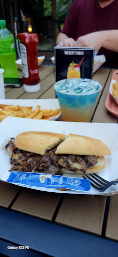 Such a cool venue! Lots of outdoor seating and a stage which makes me think they might offer live music on weekends. I got the Philly cheesesteak which was delicious! The pickle fries are also amazing. Fast & friendly service!