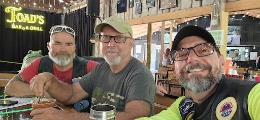 My husband and I along with another couple were camping at 4 guys and went to Toads often. The food was delicious the atmosphere very welcoming and the staff tremendously attentive. We had a medical emergency where someone in our party fell and broke her femur. The immediate response from Jeremy who communicated with the fire department and EMTs about the situation as my friend is medically involved was so impressive and saved so much time. During the time we were there trying to arrange transportation for her home to Boston Jeremy, the owner, Kim, Aubrey, and the manager consistently stopped us and asked how our friend was doing and how the process was going. We were overwhelmed with kindness and compassion. Toads is a wonderful place to visit and we plan on beginning our 2026 adventures right here in Kentucky at 4 guys RV and Toads with Jeremy and these wonderful people. We thank them for their hospitality and highly recommend anyone and everyone to visit Toads. You won’t regret it!!!!!